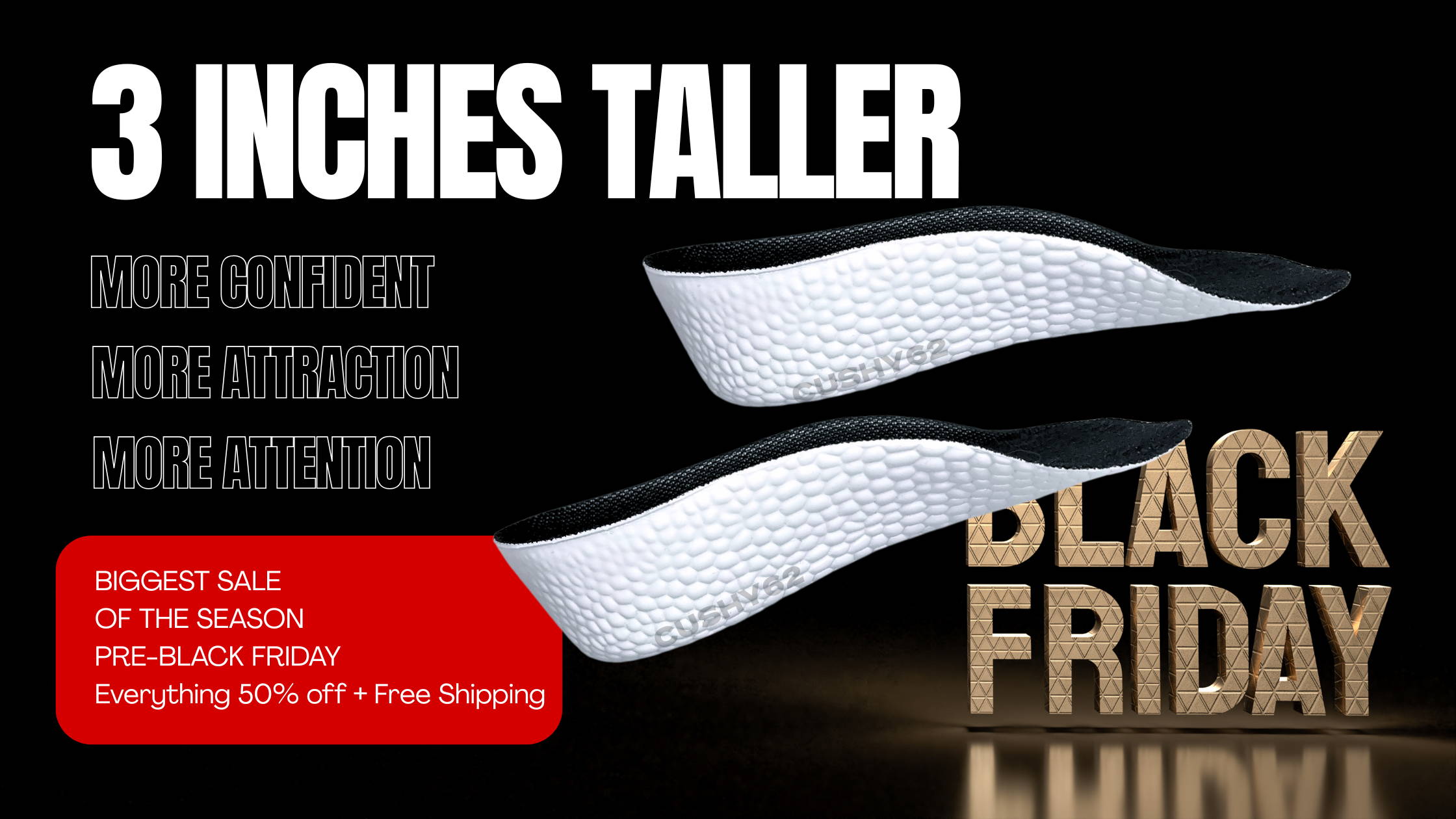 Cushy's Elevate Insole is your new secret weapon for boosting your height by up to +3.5 inches; transforming you into a taller human, and enhancing confidence in every step.